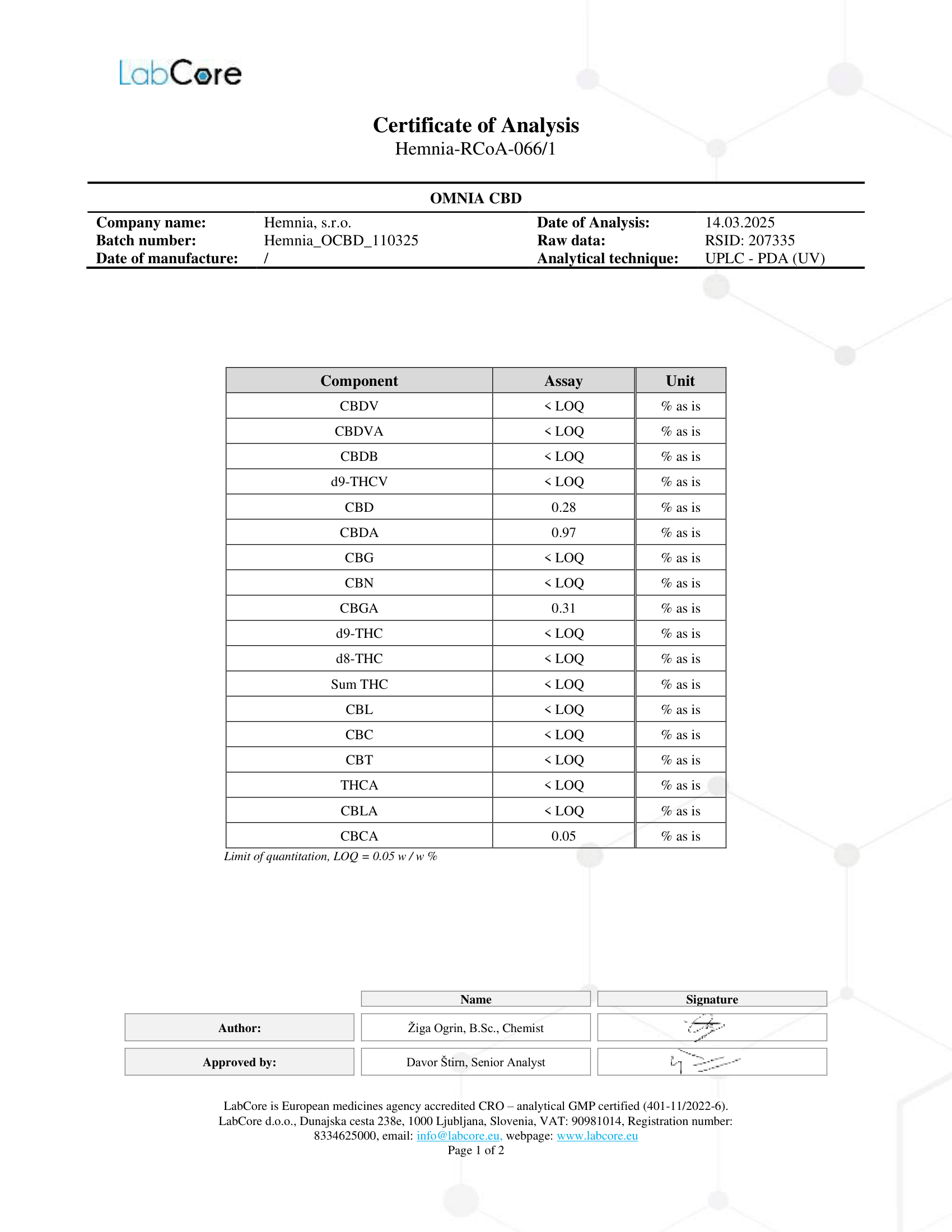 Hemnia OMNIA CBD er en løs hampblanding bestående af 100% tørret hamp fra udvalgte EU-godkendte sorter. Produktet indeholder håndplukket hamp dyrket i Tjekkiet og egner sig til tilberedning som infusion/te eller til anden traditionel anvendelse.