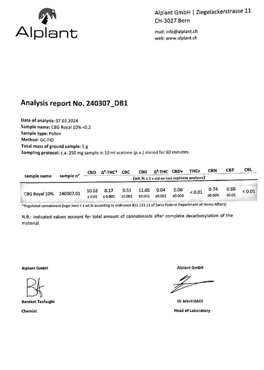 I Schweiz har man i mange år haft bedre lovmæssige rammer for at kunne dyrke og udvikle lovlige cannabisprodukter, hvilket har gjort dem til nogen af de førende producenter af cannabis i europa! Royal 20% CBG/CBD, er en potent og fuldspektret kvalitets-hash som vi har importeret fra Schweiz. I Schweiz har man i mange år haft bedre lovmæssige rammer for at kunne dyrke og udvikle lovlige cannabisprodukter, hvilket har gjort dem til nogen af de førende producenter af cannabis i europa! Aromaen beskrives som intens, dejlig og genkendelig. Konsistensen beskrives som blød, lækker og en anelse klistret.